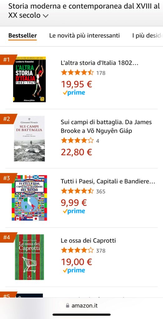 Le ossa dei Caprotti ancora quarto nella sezione Storia di Amazon