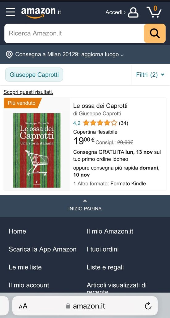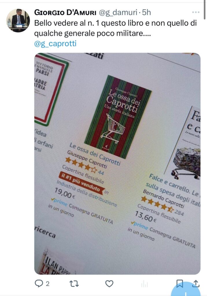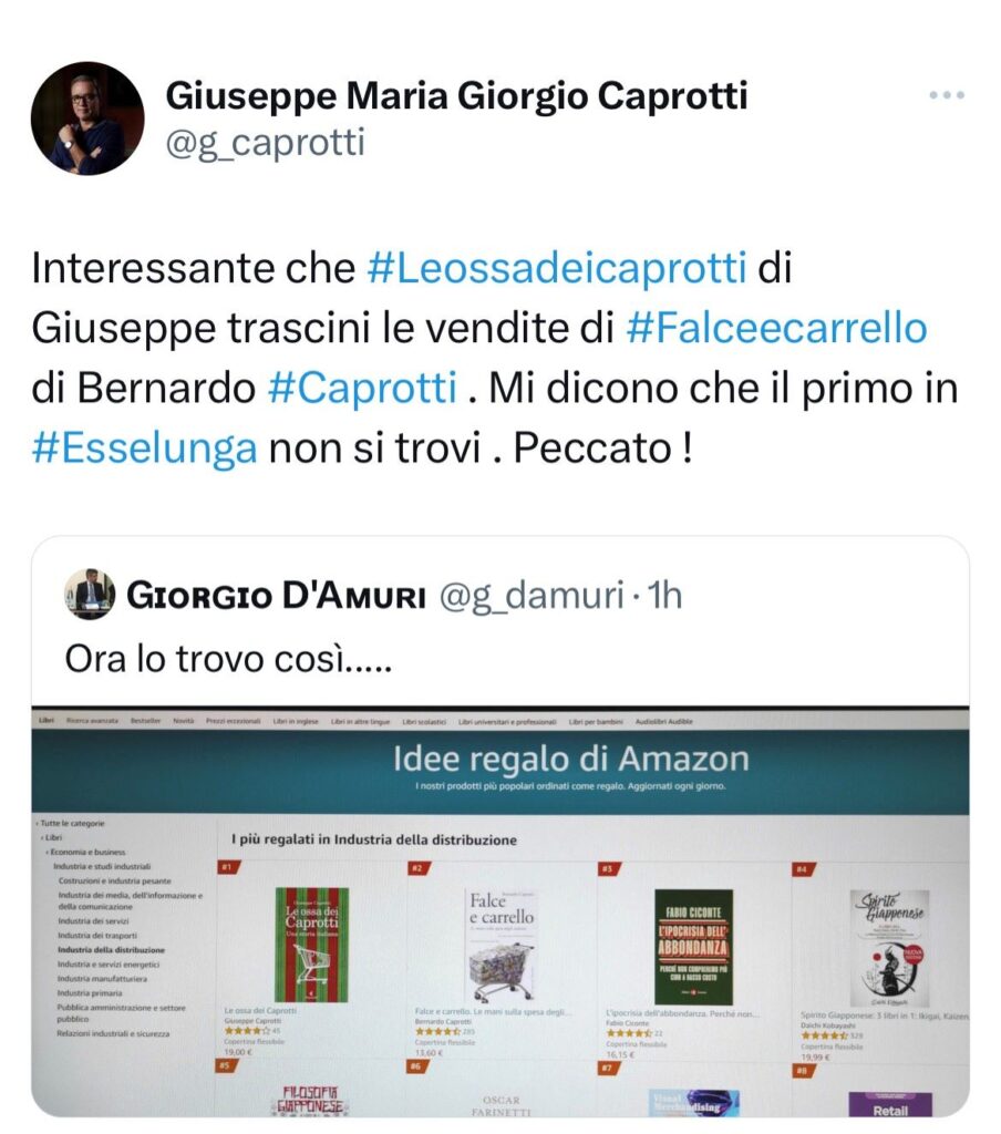 ” Le ossa dei Caprotti ” tira la volata a ” Falce e Carrello ” su Amazon. Peccato, mi dicono, che in Esselunga il mio libro non sia in vendita