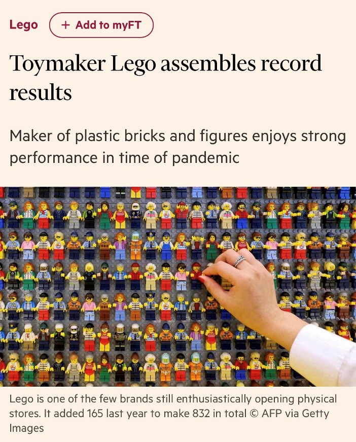 Il leader dei giocattoli continua ad aprire negozi fisici ed investirà 1 miliardo di $ in Asia dove posizionerà la sua sesta fabbrica Financial Times
