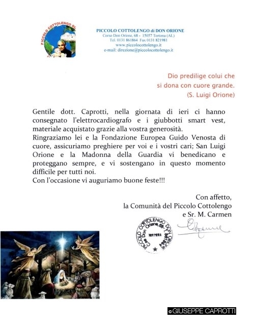 proviene dal Piccolo Cottolengo di Don Orione. Buon Natale