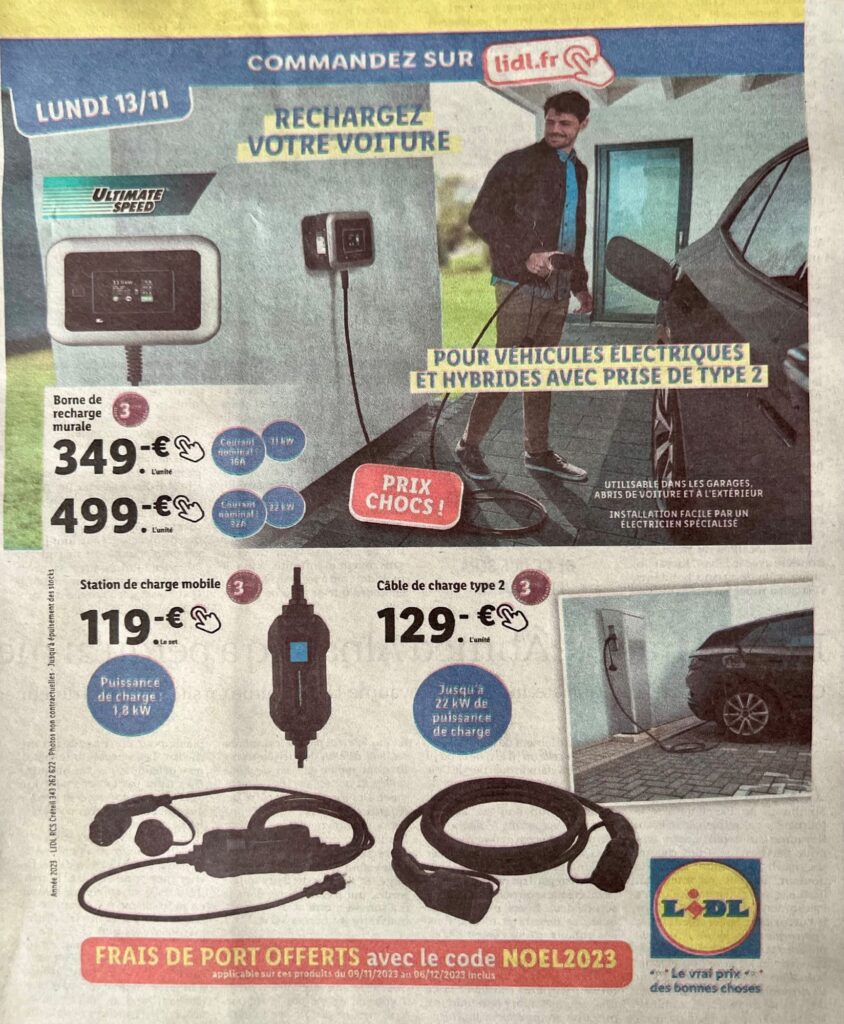 Lidl Francia vende e pubblicizza gli accessori per la ricarica di auto elettriche
