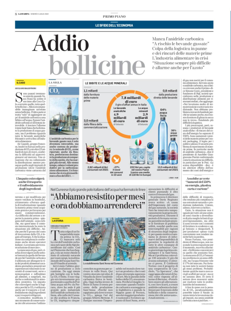 Le ragioni : logistica in panne e rincari delle materie prime. La Stampa 8 luglio 2022