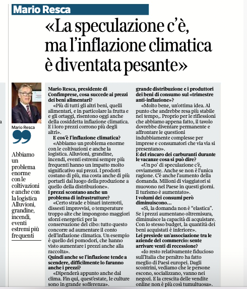 che è molto forte nel comparto frutta e verdura. Corriere della Sera 31 luglio 2023
