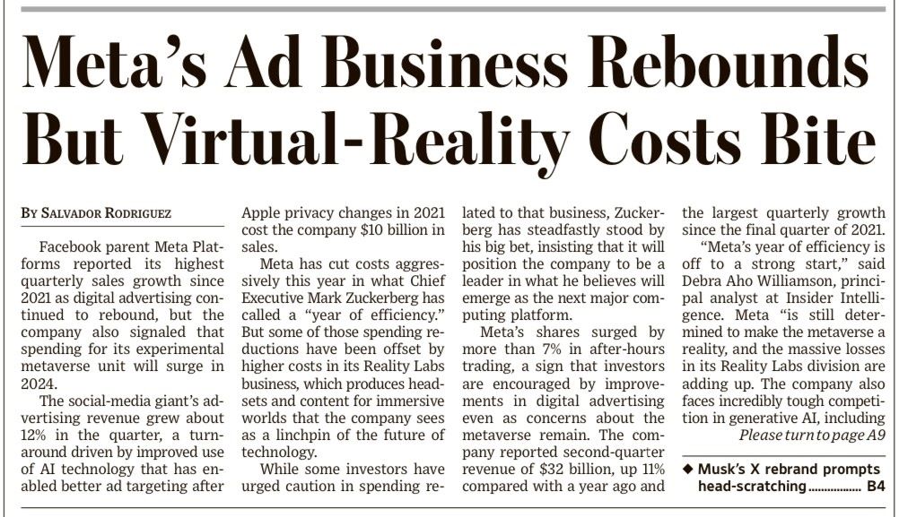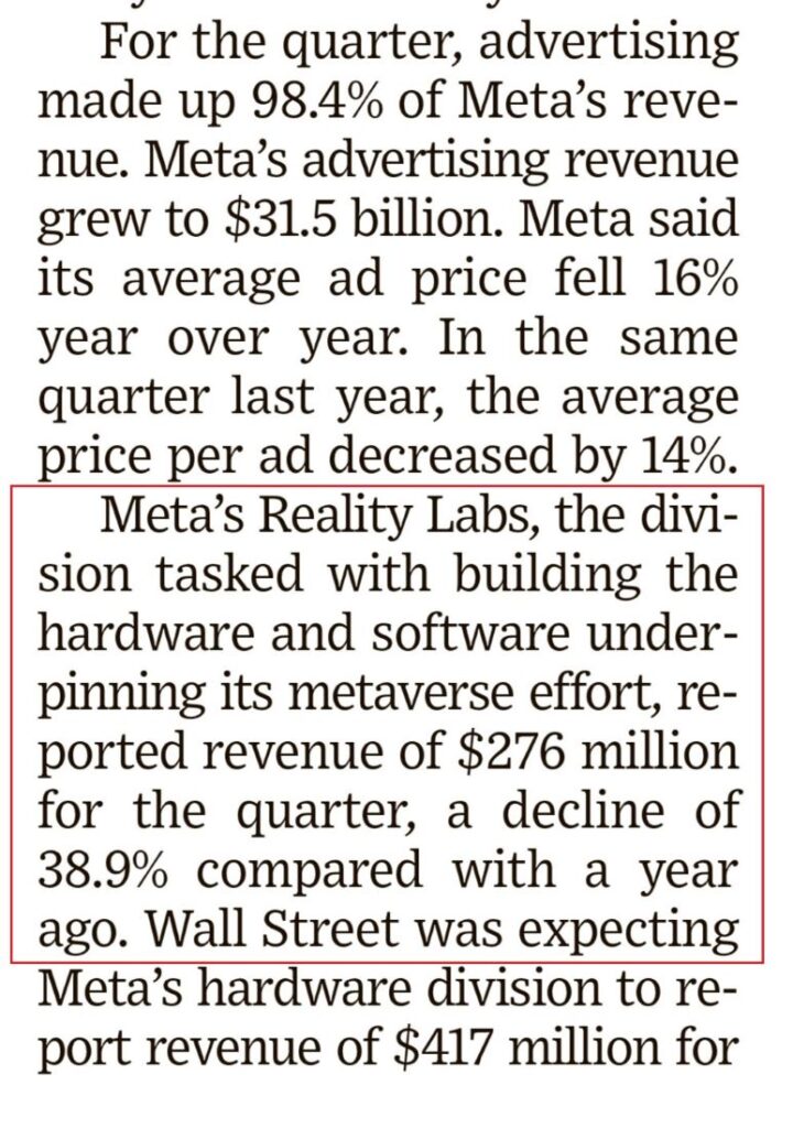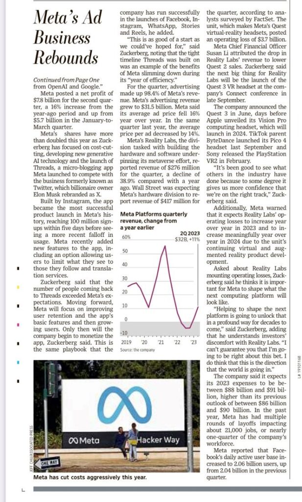 Zuckerberg però “insiste” (WSJ 27 Luglio 2023), nonostante delle perdite spaventose (50 miliardi di $ nel 2023, secondo il Financial Times). . Leggi in proposito questo articolo e questo pezzo