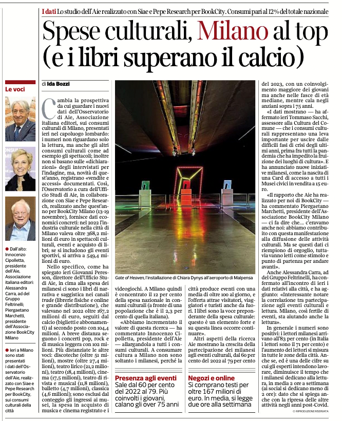 Milano: 12% delle spese per la cultura con il 2,3% della popolazione italiana