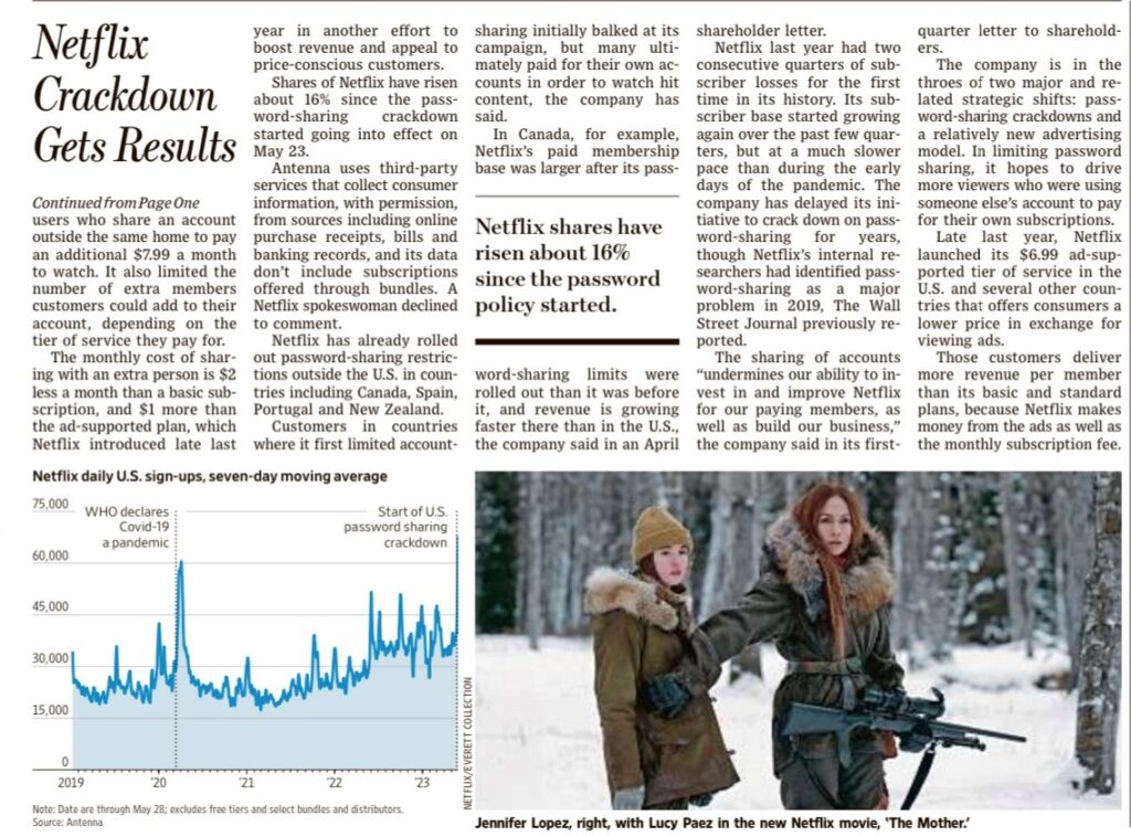 Il titolo ha guadagnato il 16% da quando è stato effettuato. Il numero di abbonamenti è salito. Wall Street Journal . Ne avevamo parlato qui. Su Netflix puoi leggere questo articolo.