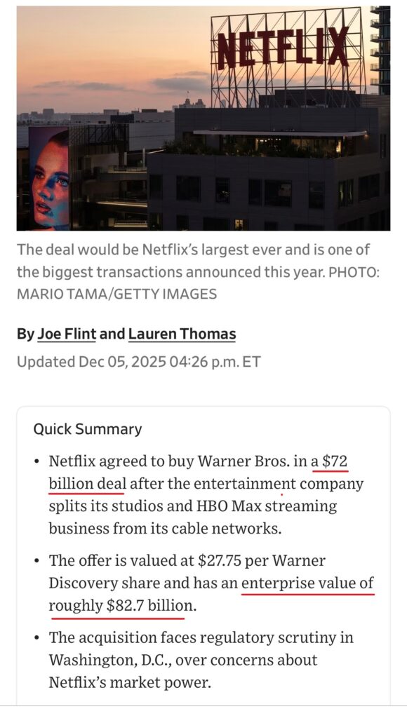 Il gruppo cinematografico e televisivo americano Warner Bros. Discovery (WBD) ha annunciato martedì 24 febbraio che Paramount Skydance (PSKY) ha presentato una nuova offerta di acquisizione di 31 dollari ad azione, in aumento rispetto alla precedente offerta di 30 dollari. Includendo il debito di WBD, questa valutazione dell’obiettivo si aggira intorno ai 110 miliardi di dollari (93 miliardi di euro)…