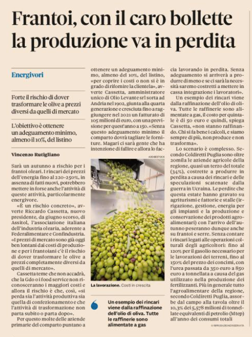 L’inflazione sta colpendo duramente il settore. Il Sole 24 ore del 7 settembre 2022