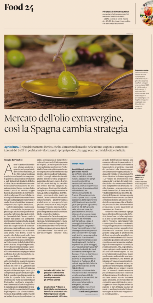Il Sole 24 ore del 4 novembre 2023. Sull’olio leggi questo approfondimento