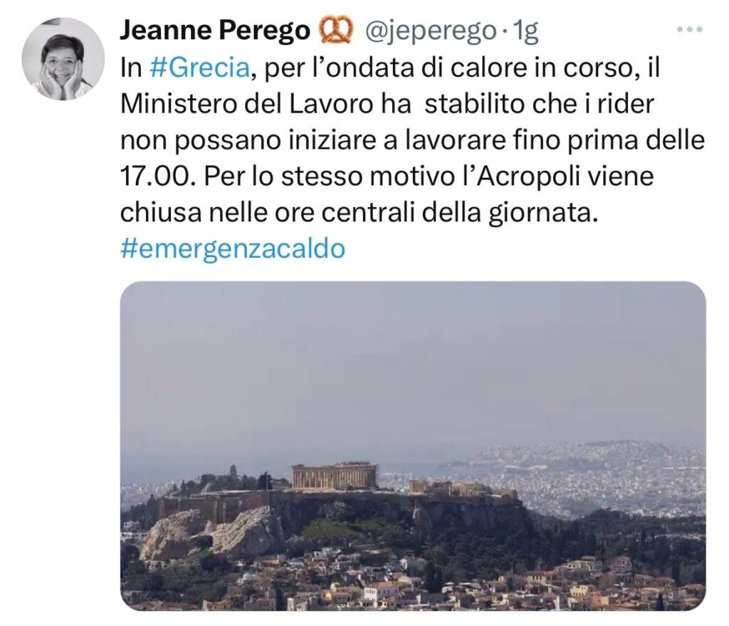 E ad Atene 41°. Orari del delivery limitati . Jeanne Perego. Luglio rischia diventare più caldo di giugno . Il fenomeno rischia di impattare su agricoltura ed inflazione.