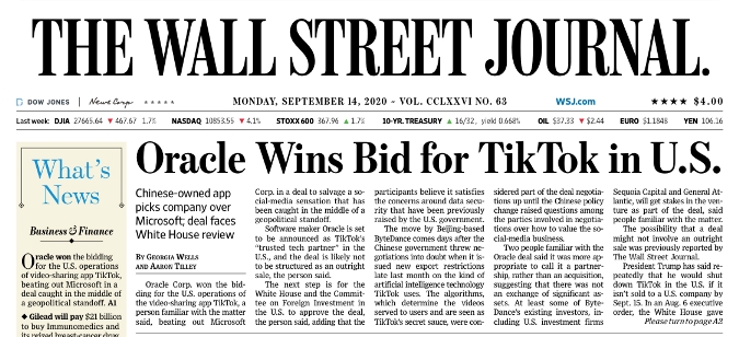 Wall Street Journal 14 settembre 2020. Ne avevamo già parlato