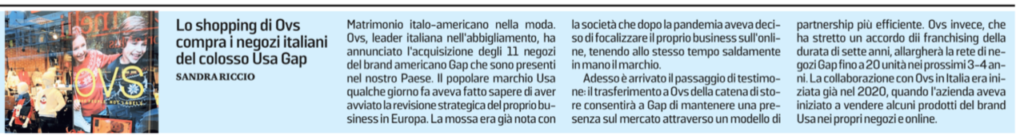 La Stampa 4 novembre 2021: Su Gap leggi questo articolo