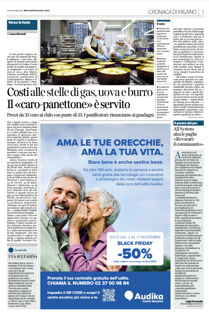 Corriere della Sera 8 novembre 2023. Il rischio è che prosegua il peggioramento della qualità del cibo