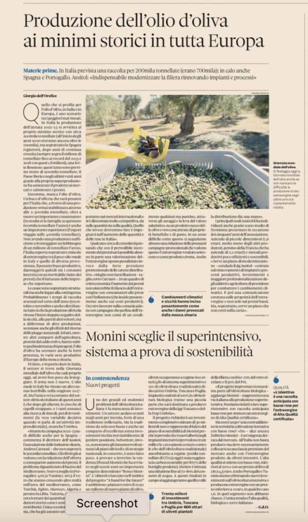 Siccità e piogge autunnali, che causano malattie, tra le cause. Totale assenza di piano di rilancio dell’olivicoltura in Italia. Il Sole 24 ore del 26 novembre 2022.leggi anche L’Italia rischia di rimanere senza olio extravergine di oliva italiano entro l’estate