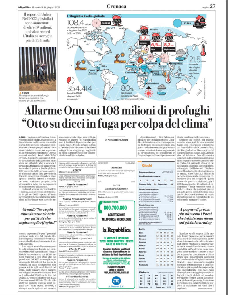 Profughi : 8 su 10 si spostano a causa del cambiamento climatico