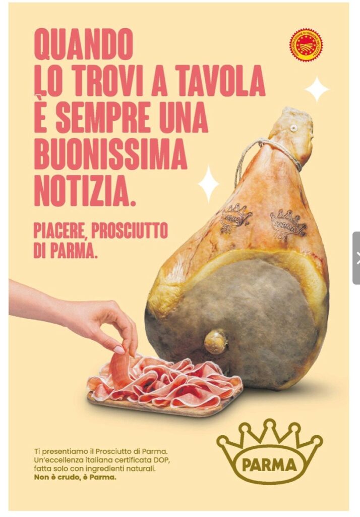 E ci si domanda: la pubblicità sul prosciutto di Parma, uscita recentemente, riuscirà ad invertire la negatività innescata da Prosciuttopoli ?