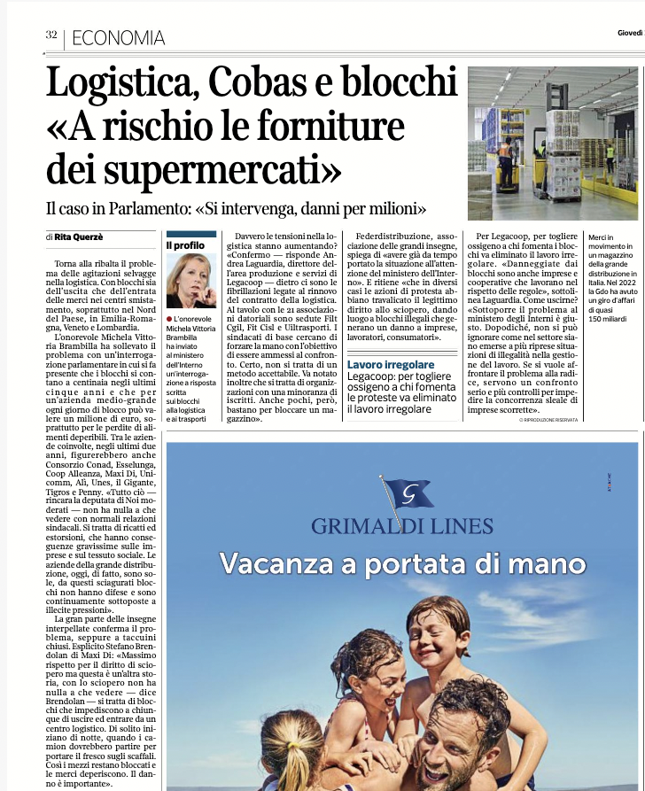 Corriere della Sera 30 maggio 2024. D’altronde, se come nelle vicende Conad ed Esselunga i sindacati nazionali non funzionano, ci si può aspettare di tutto e di più dai Cobas