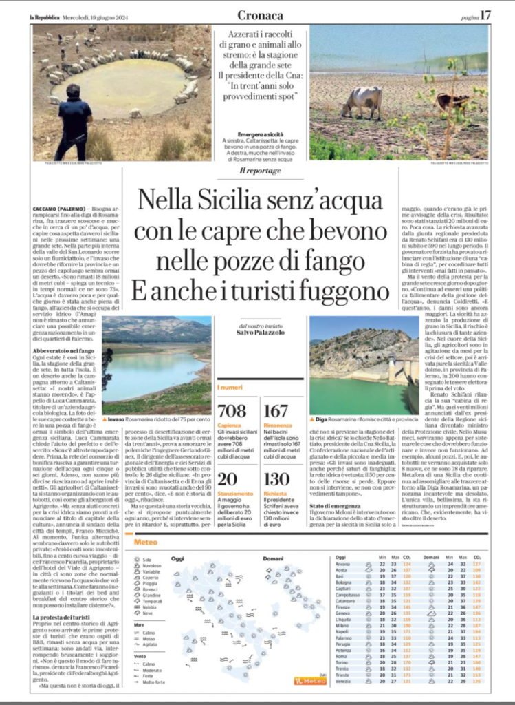 Repubblica 19 giugno 2024. Su Coldiretti, Sicilia e cambiamento climatico leggi qui