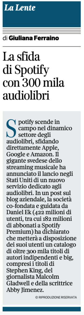 Spotify : sfida ad Amazon, Google e Apple sugli audiolibri