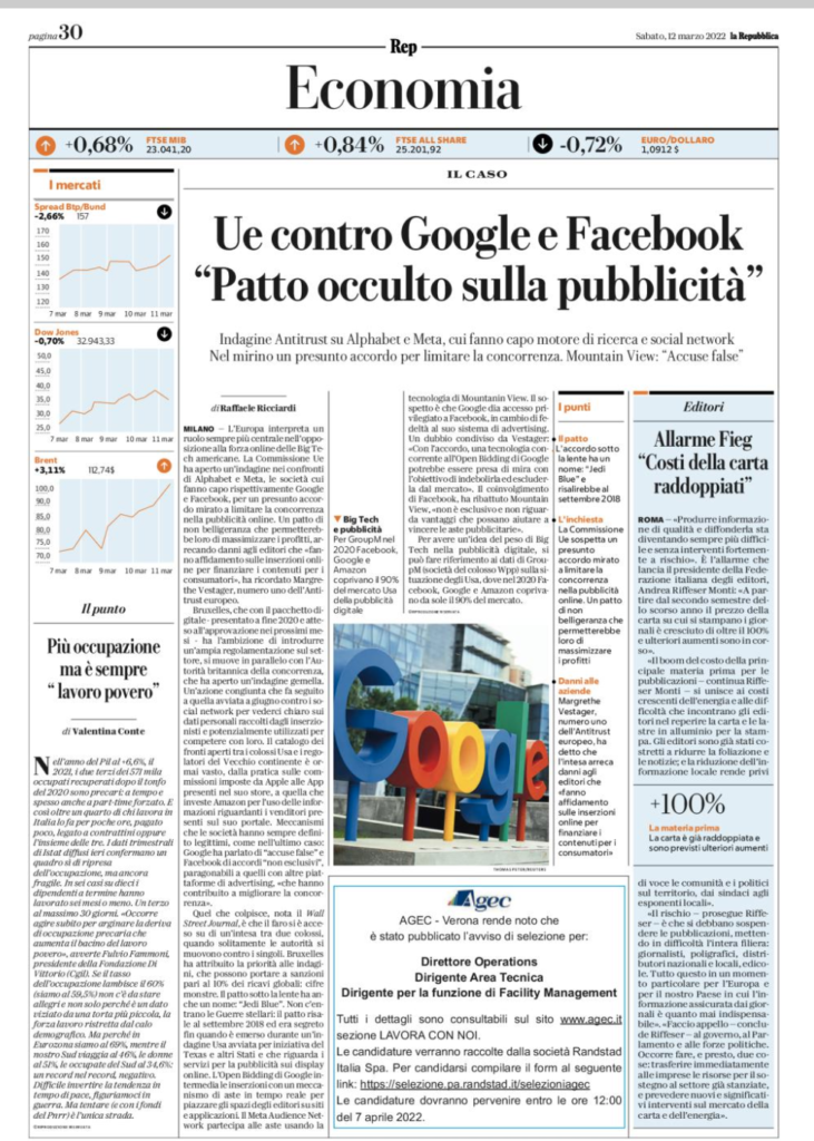 inchiesta antitrust. Repubblica 12 marzo 2022