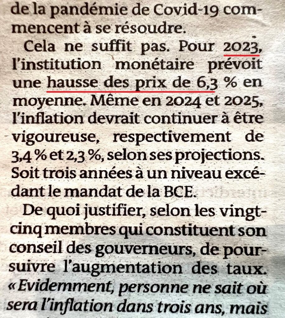 UE : la BCE prevede inflazione al + 6,3% nel 2023