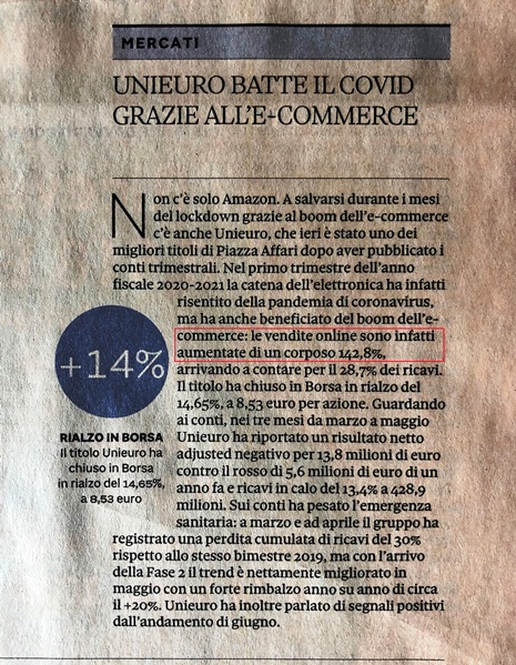 Unieuro batte il Covid grazie all’e-commerce
