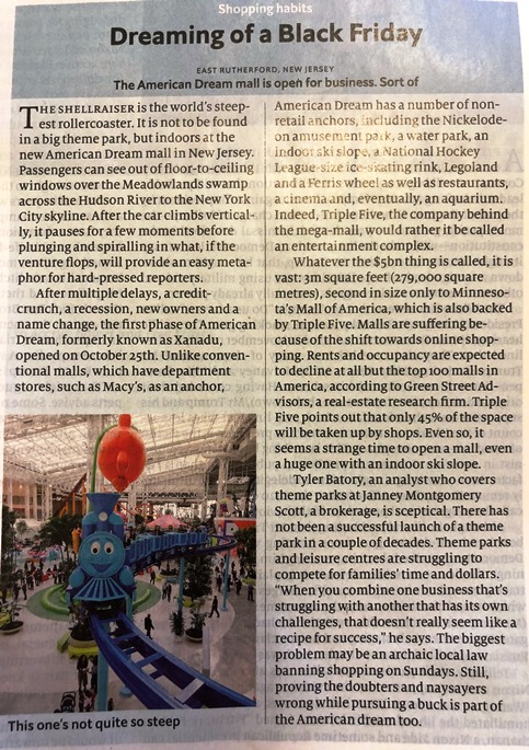 di investimento. In controtendenza, la superficie è di 27,9 ettari e solo il 45% è dedicato al commercio, il 55% a parchi a tema. The Economist dicembre 2019