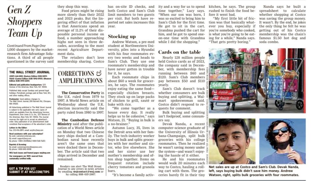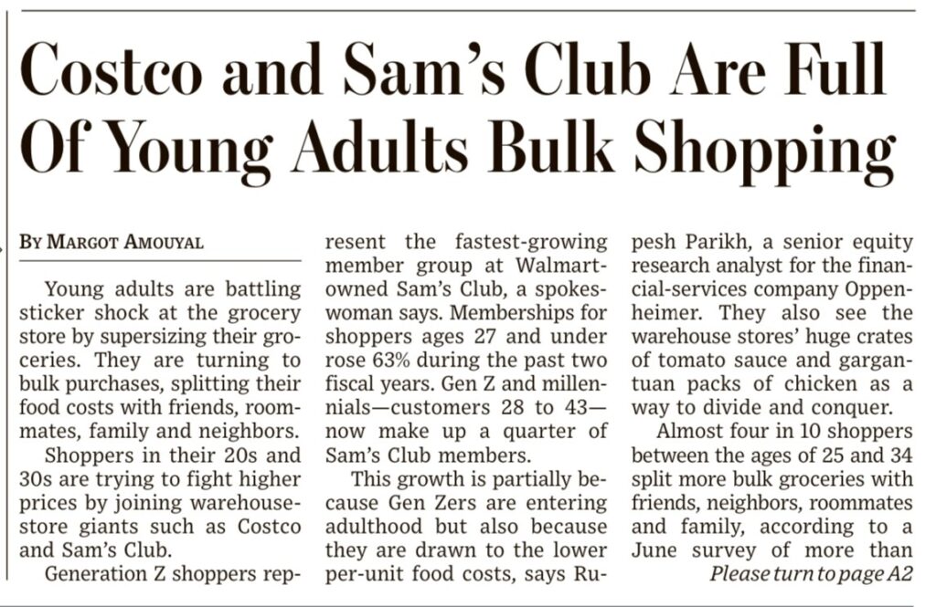 Si tratta di strutture che vendono solo ada derentiche pagano una fee annuale in cambio di una tessera. Costco ha 128 milioni di abbonati. The Wall Street Journal 6 luglio 2024
