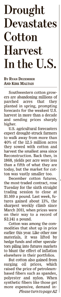 Si stima che verrà abbandonato il 40% dell’area dedicata alla sua coltivazione. WSJ 17 agosto 2022