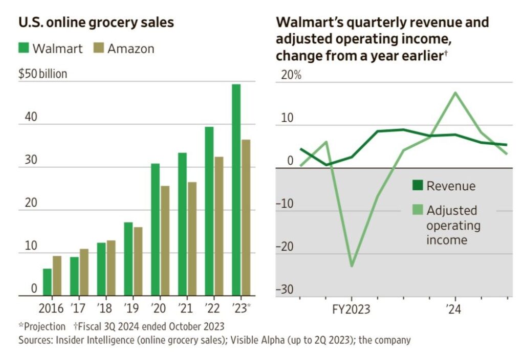 Su Walmart: “Il colosso della vendita al dettaglio ha registrato un aumento dei ricavi del 5,2%, con un fatturato che ha superato i 160,8 miliardi di dollari durante il trimestre. L’utile operativo rettificato è aumentato del 3% in quel lasso di tempo. Anche il business digitale del rivenditore sta andando a gonfie vele, poiché le abitudini di acquisto online diventano più radicate. L’e-commerce è aumentato del 15% su base globale e ha prosperato negli Stati Uniti, con un picco del 24% attribuito alla forza del ritiro e della consegna…”