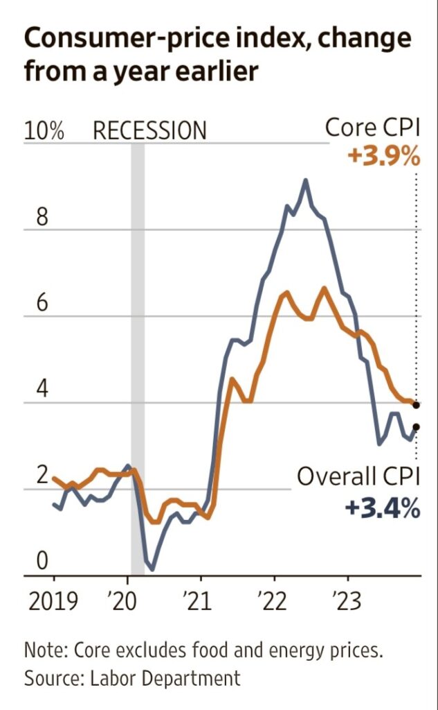 con alimentari ed energia siamo a + 3,4% (+ 3,1% a novembre) . WSJ 12 gennaio 2024