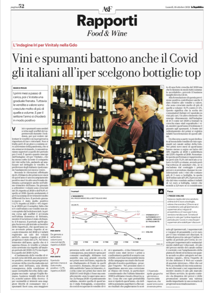 Vendite a valore più altre di quelle a volume. AF Repubblica 18 ottobre 2021