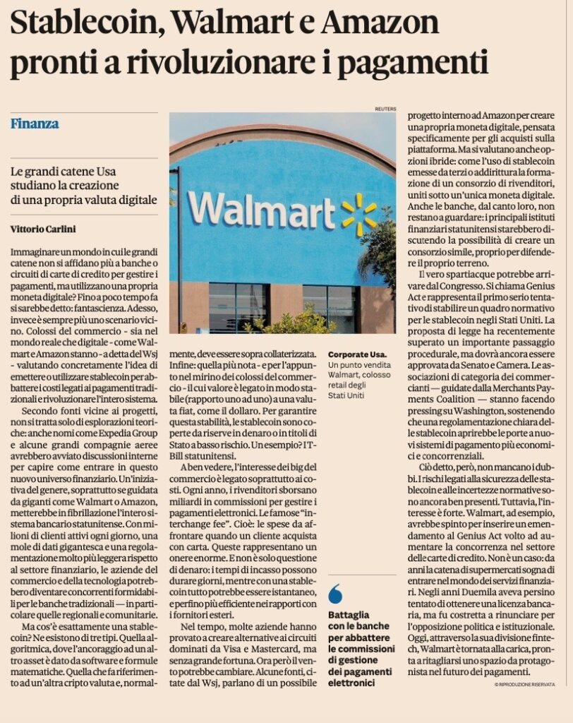 La Stablecoin è una criptovaluta il cui valore è legato a un asset “stabile” che può essere una valuta tradizionale o una materia prima. Se le stablecoin venissero adottate sarebbe forse i primi metodi di pagamento a marchio interamente privato (gli altri si appoggiano sulle banche). Come fa notare Clara Mentasti si tratterebbe anche di “una minaccia alla sovranità monetaria” (della Banca Centrale USA).