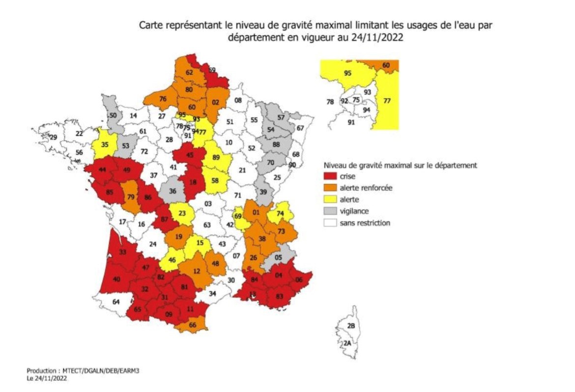 I dipartimenti in rosso ed arancio sono “in crisi” o in “allerta rinforzata”.