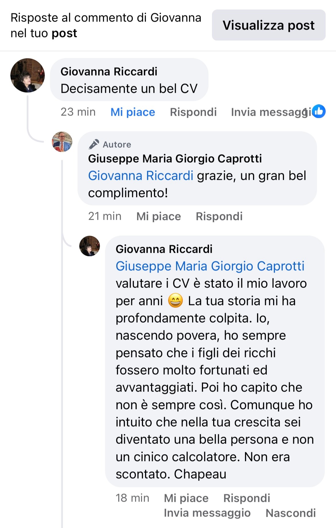 Giovanna : “decisamente un bel CV”