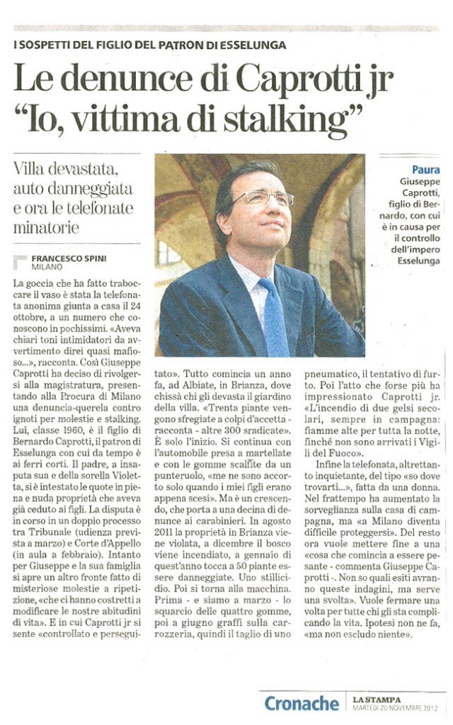 PrecedenteArticolo precedente:Giuseppe Caprotti vittima di StalkingSuccessivoArticolo successivo:Giuseppe Caprotti vittima di Stalking. I gelsi incendiati