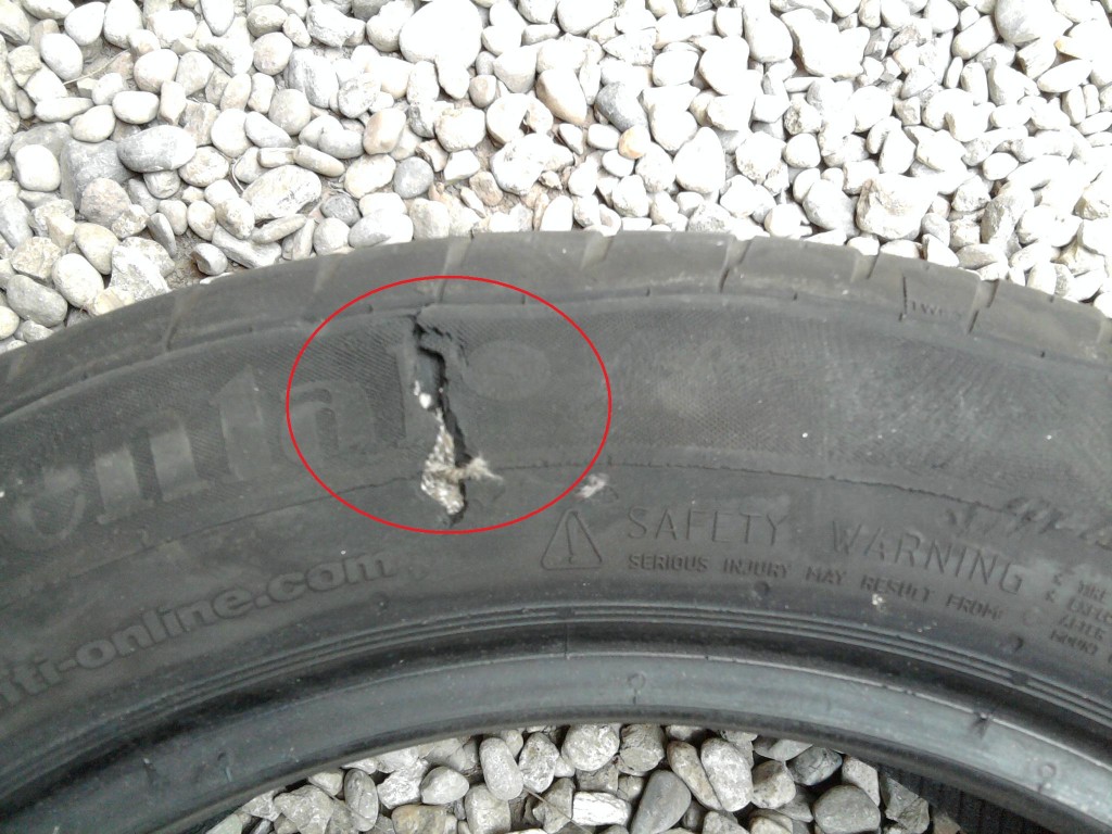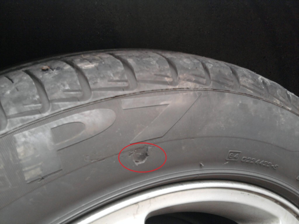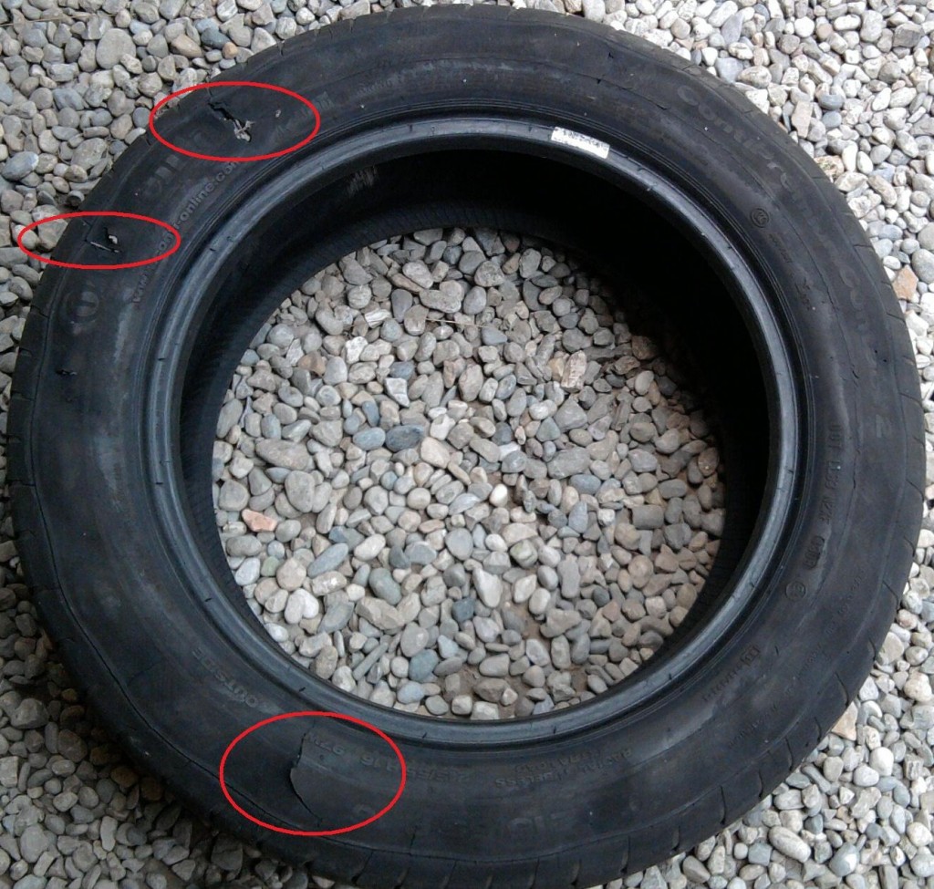 sotto gomma tagliata in più punti, gomma colpita con il punteruolo, macchina martellata e gelsi bruciati