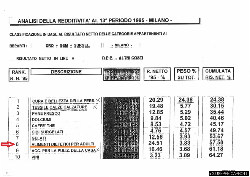 La categoria era molto “discreta”: utilizzava poco spazio, pochissima manodopera e rendeva benissimo, tanto da essere la ottava in assoluto per risultato netto nel Largo Consumo Confezionato dell’azienda di Limito(escludendo i freschissimi: pane fresco non confezionato, frutta e verdura, carne, latticini e formaggi e gastronomia).