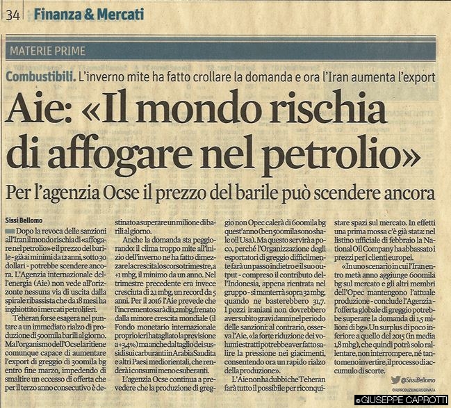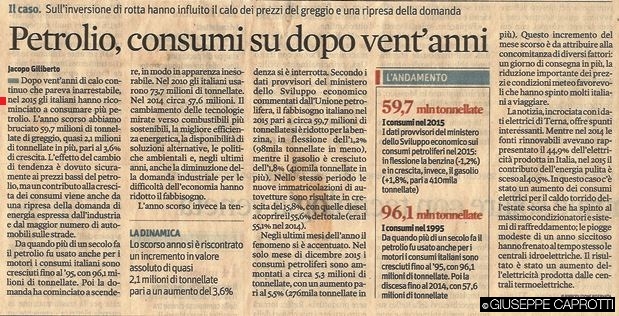 Ma il calo del prezzo del petrolio ne favorisce, ahìnoi, il consumo e gioca a sfavore dell’abbassamento della temperatura.