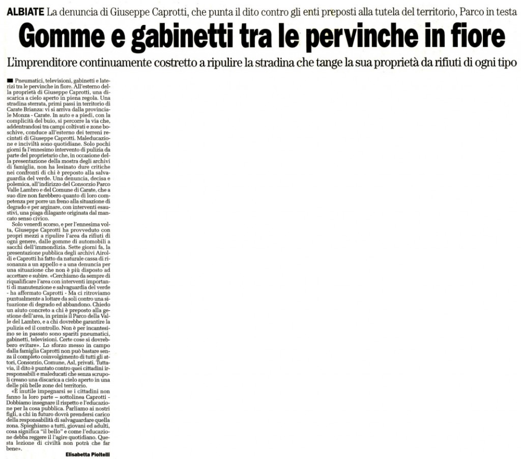 La vicenda degli scarichi abusivi ad Albiate e Carate è iniziata nel 2006. Vedi articolo sotto.