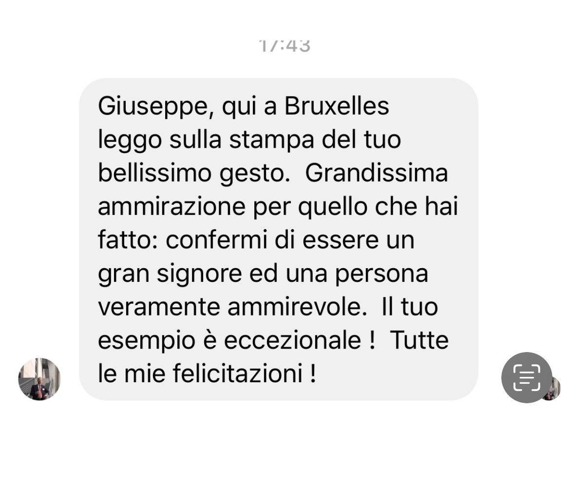 Giuseppe, qui a Bruxelles leggo sulla stampa del tuo bellissimo gesto.