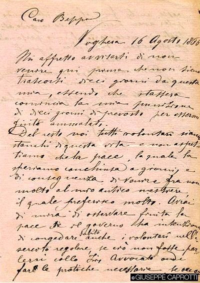 A quel punto, l’entusiasmo per le imprese belliche era ormai scemato in Giuseppe, e da un pezzo: forse, come per il prozio Carlo, il senso degli affari dei Caprotti lo stava richiamando a una vita magari ingloriosa, ma sicuramente, nel suo caso, più proficua.