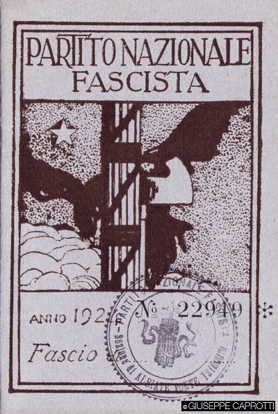 Ancora saldamente repubblicano – l’ultima tessera a noi pervenuta è dell’anno 1919 – nel 1916 Bernardo si abbonò al «Popolo d’Italia», il giornale fondato da Benito Mussolini, forse attratto dalla sua politica interventista nella Grande Guerra. Non stupisce più di tanto, quindi, trovarlo su posizioni vicine al fascismo una volta che questo iniziò a farsi sentire, nella crisi dell’immediato dopoguerra. Se infatti, a livello di largo consenso popolare, il fascismo non ebbe molta presa nelle zone brianzole, nemmeno dopo l’effettiva presa di potere col controllo del Parlamento, dopo le elezioni del 1924, diversamente si può dire della fascia sociale facente capo ai grandi proprietari terrieri e agli industriali, cui il clima di scioperi e controversie che avevano caratterizzato l’instabilità e la difficile situazione economica del primo dopoguerra non avevano certo facilitato la vita: forse per questo, nel 1923, Segretario della sezione locale albiatese del PNF risulta essere Giovanni 2 Caprotti.
