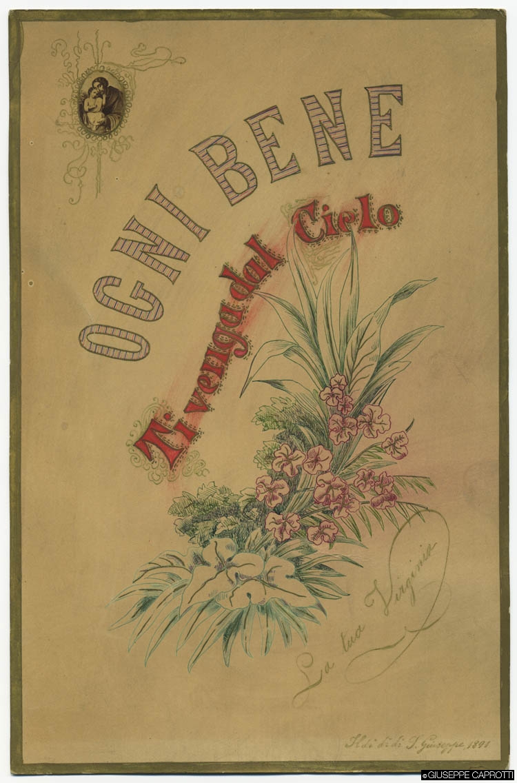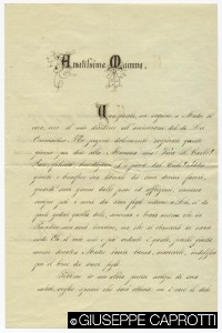 1891Biglietto di auguri di Virginia Caprotti al fratello Giuseppe in occasione dell’onomastico mm. 116×240