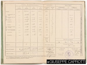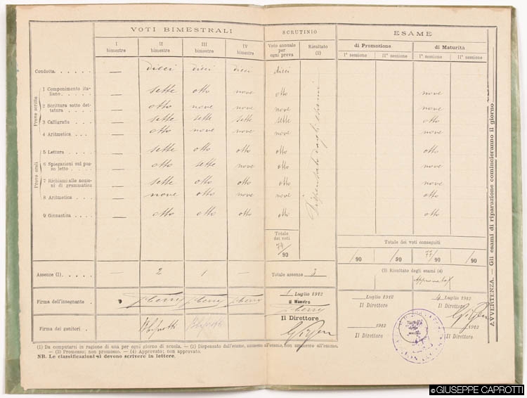 1912 Pagella scolastica dell’alunno Giuseppe Caprotti (quarta classe elementare. Giuseppe era mio nonno ed era soprannominato Peppino) mm. 250×165