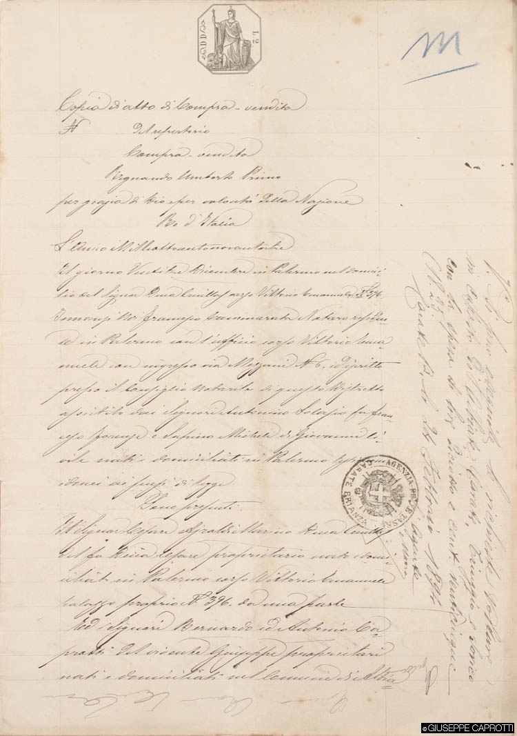 15 1893 dicembre 23, Palermo Copia di atto di compravendita con cui i fratelli Bernardo, Antonio, Emilio e Giovanni Caprotti di Giuseppe acquistano dal duca Cesare Ajroldi Marino, duca Cruyllas la proprietà di Villa San Valerio ad Albiate mm. 215×310