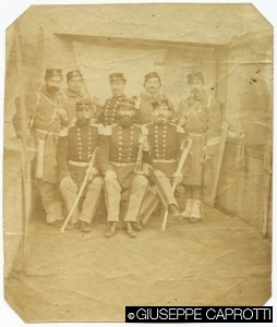 20 senza data [ma post 1859]I membri della Guardia nazionale di Albiate Stampa fotografica, mm. 140x170Albiate, Villa San Valerio, Archivio Caprotti, busta 121, fascicolo 7Fotografia degli effettivi che componevano la Guardia nazionale di Albiate, tra i cui ufficiali possiamo agevolmente immaginare di vedere un Caprotti, anche se al momento non è stato ancora possibile stabilire chi e quale fosse tra i personaggi fotografati.