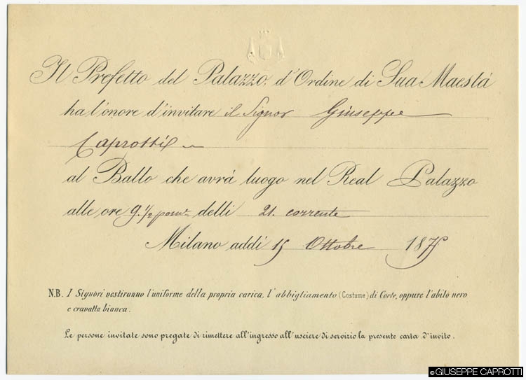 22 1875 ottobre 15, Milano Invito a Giuseppe Caprotti a un ballo di corte mm. 200×140