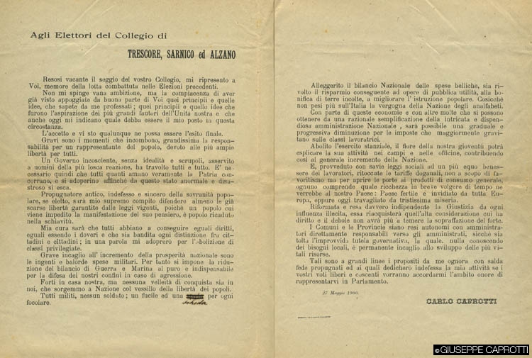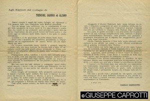 23 1900 maggio 27 Volantino di propaganda elettorale di Carlo Caprotti mm. 285×220
