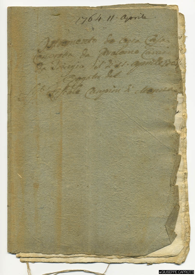 26 1764 aprile 11, Monza Istromento de una casa conprata da Girolamo Canzi da Triugio il dì 11 aprille 1764, rogata del signor fiscale Caupini di MonzaCopia autentica di atto notarile, cartaceo, mm. 278×195, ff. 8Gerolamo Canzi del fu Giuseppe, di Triuggio pieve di Agliate, vende a Flaminio Caprotti del fu signor Giuseppe, di Ponte Albiate ma attualmente dimorante in Monza, acquirente a nome suo e dei fratelli Gerolamo e Giovanni, una casa con stalla sita in Ponte Albiate.
